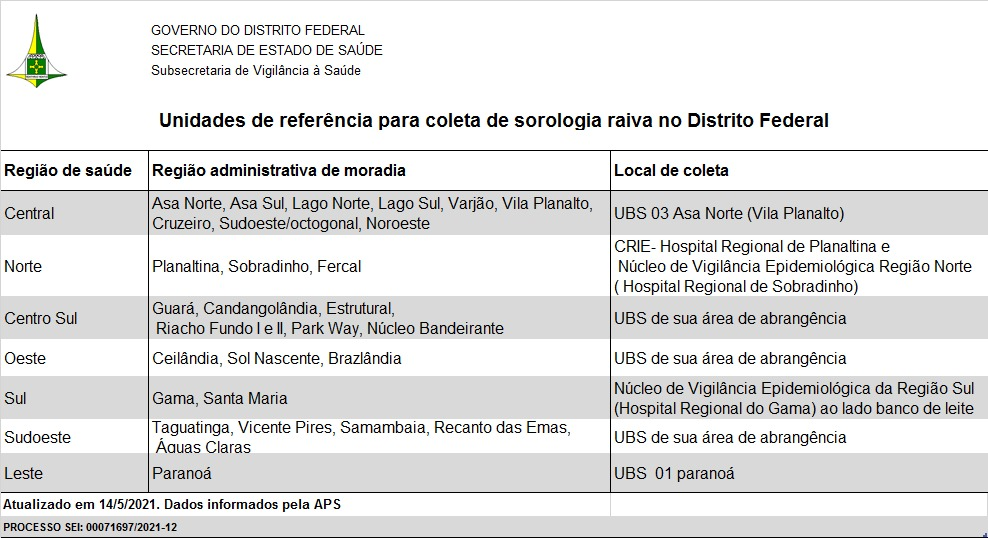 – Confira aqui os locais de coleta de sorologia para controle sorológico pós esquema pré-exposição antirrábica humana